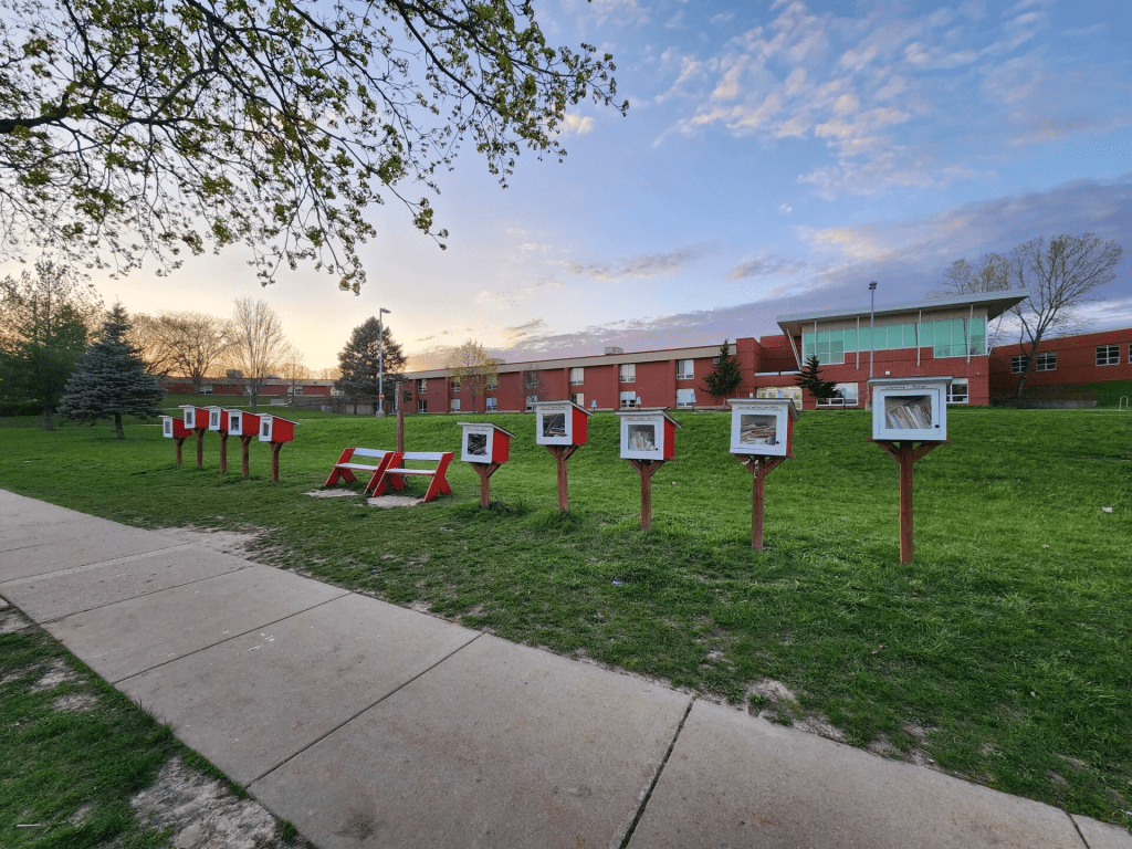 I would like to present our first community service work as CT Contracting Inc. My daughters attend Leopold Elementary School. Out front of the school there is a series of Free Library Boxes, donated by a good samaritan some years ago. The plaque that stood there had been damaged beyond reading. The library box doors were all mangled and torn mostly from the hinges. My mother in law Deborah Langsdorf, President of Wisconsin’s Mensa Chapter, brought it up to me saying, “I really would like to do something about this!” When I saw them,, I was dismayed. I could tell they were once a valued resource . It would take me and my top guy less than a day’s labor to make it right and paint the benches That sit nearby to match. Deborah got on the communications and located the paint and permissions to fix them and we got to work! Since we got the boxes all tip-top again, we have found two doors ripped off again. We fixed them promptly, without fuss or grudge.